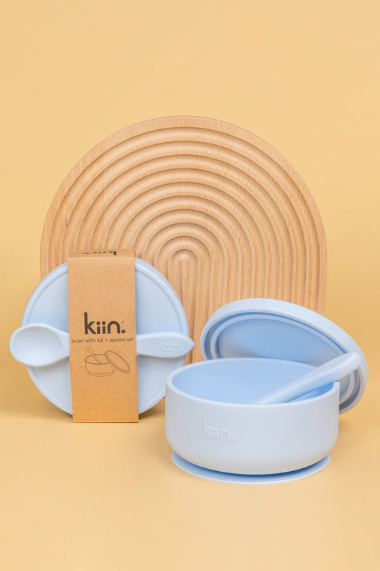 KIIN. SILICONE SUCTION BOWL WITH LID - PASTEL SKY