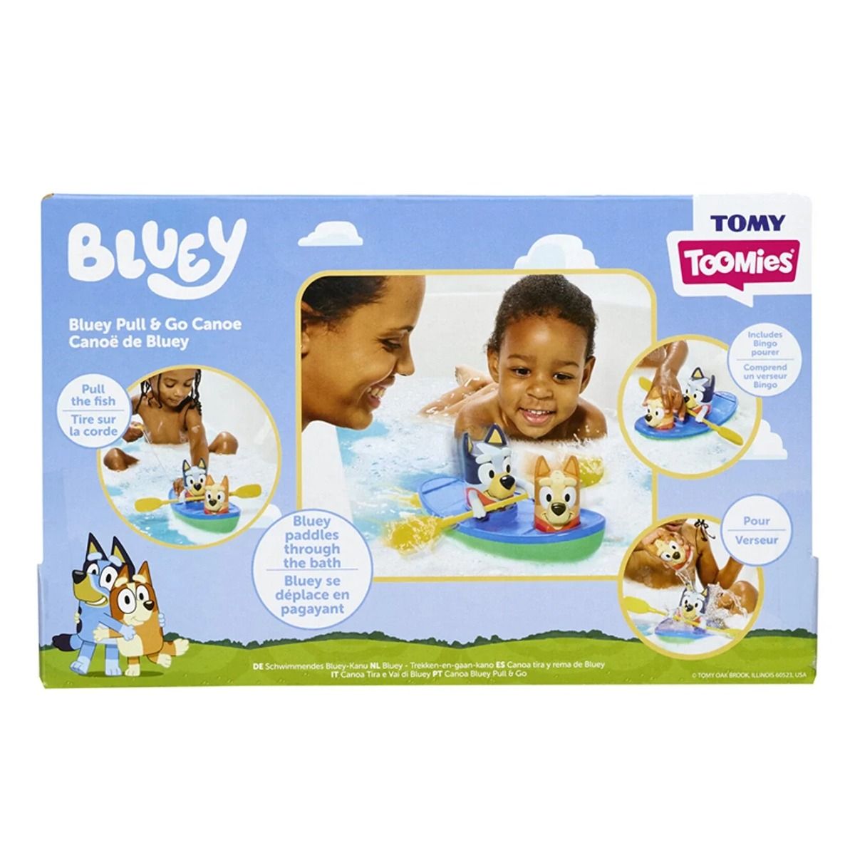 Join Bluey & Bingo in the bath or pool as they go on a leisurely canoe ride! These pups really love to splash and row, watch as the oars dip into the water on either side of the canoe! To get them started, pull the fish cord, then watch them go! Bluey and Bingo will be the star of bath time in no time! Specially designed for use in water with no batteries required!
