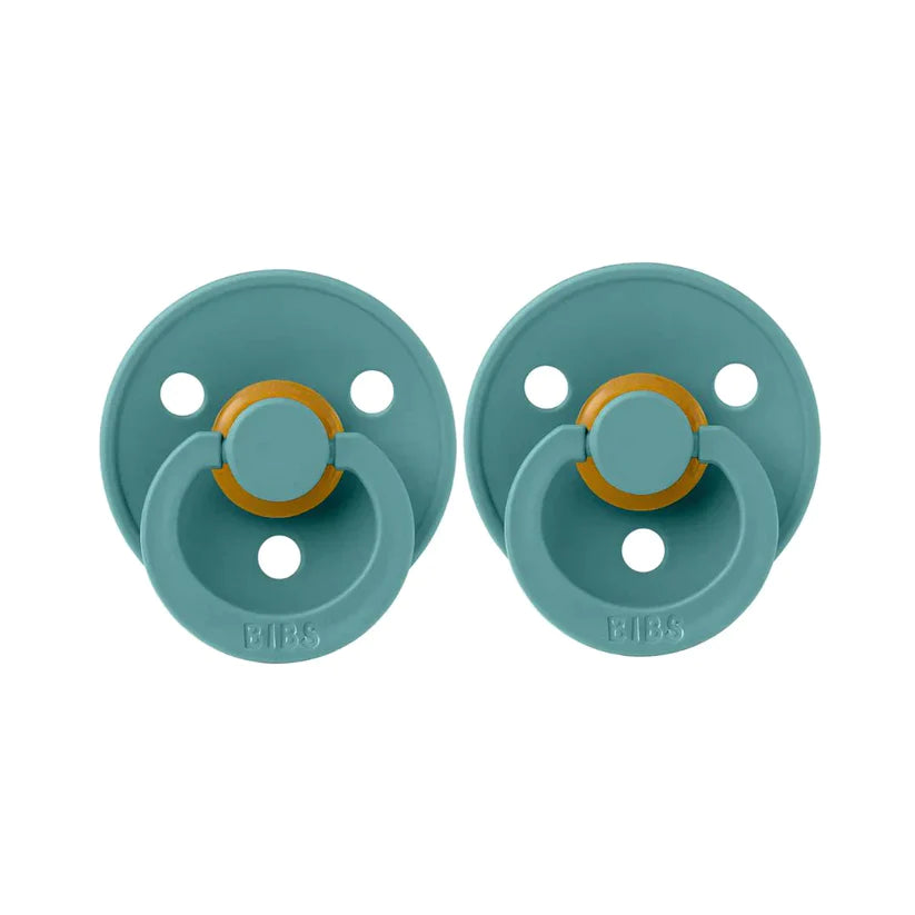 The Colour pacifier is the original BIBS pacifier and has been on the market for over 40 years. It has the signature round BIBS shield with three vent holes and round BIBS engraved handle ring.
