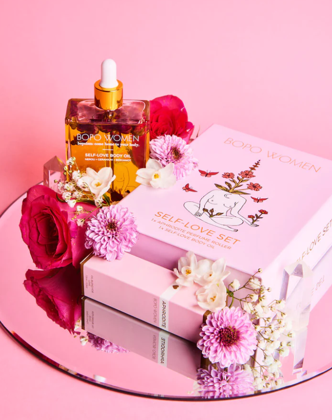 This gift set arrives in our Self-Love Gift Box and features our Self-Love Body Oil and our Aphrodite Crystal Infused Essential Oil Roller. Self-Love Body Oil: combines geranium, bergamot, mandarin & neroli essential oils infuse your skin with vitamins, fatty acids and antioxidants to rejuvenate and restore. Suited to all skins types, fast absorbing and can also be used in the bath and on hair ends. Aphrodite Crystal Infused Oil Roller: a crystal infused essential oil blend to cultivate love & abundance in your life. Perfect as a light natural perfume alternative. Combines the heavenly ylang ylang with grapefruit oil, sweet orange oil, patchouli and mandarin oil to create a feminine blend fit for a goddess. Features a Rose Quartz rollerball.
