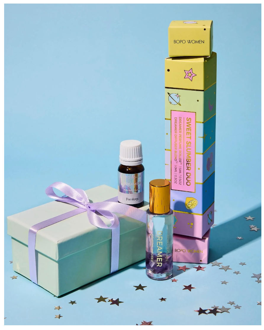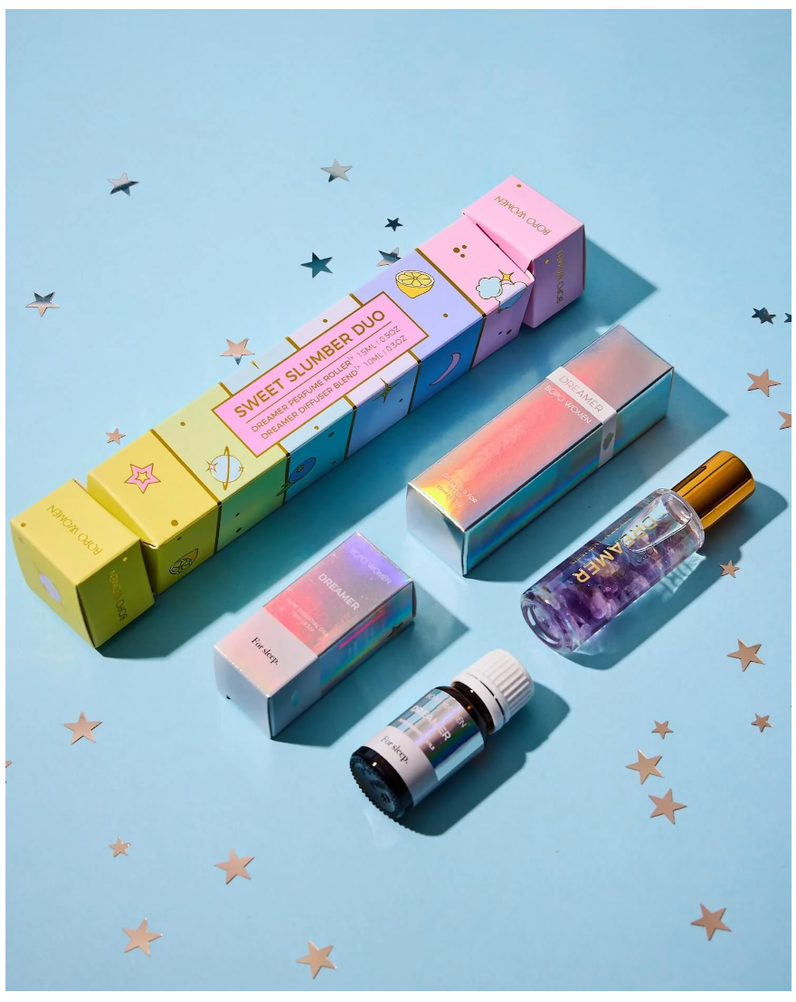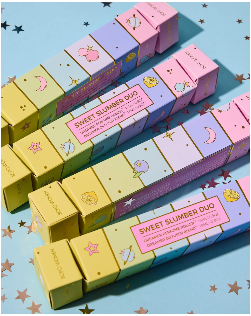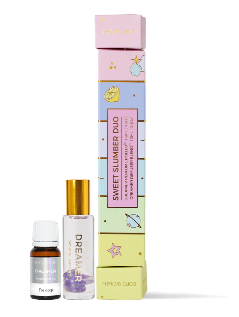 The limited edition Sweet Slumber Duo is what sweet dreams are made of. This Xmas themed bon bon pairs our beautiful amethyst infused Dreamer Perfume Roller with the Dreamer Diffuser Blend. Both products have been carefully formulated to promote calm and sleep. It's the perfect Xmas present for that special friend, colleague or family member this holiday season.