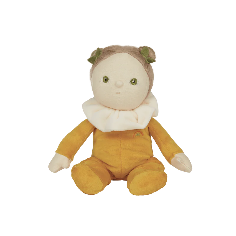 Cora Corn, the darling of the cornfield! With her sunny disposition, Cora is the sweetest kernel you'll ever meet. With her little frill and sweet velvet onesie, Cora is always here for cuddles and will giggle at the corniest of jokes too. Be it dreaming of sunny days or whispering secrets to the scarecrows, Cora Corn brings a kernel of kindness wherever she goes.