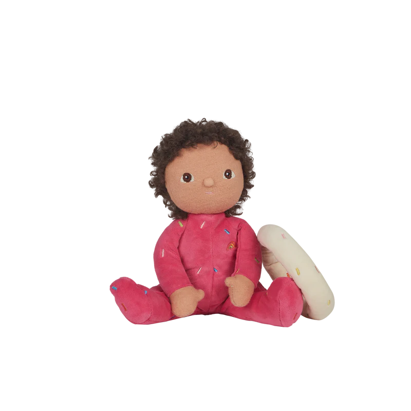 Sprinkle playtime with Dinky Dinkum Sweet Treats! Limited-edition and palm-sized, Sadie Sprinkles is perfectly weighted in all the right places and snuggled in a velvety onesie with a removable plush doughnut ring. Dinkys are the cheekiest playmates, full of collectable fun.