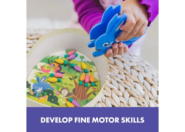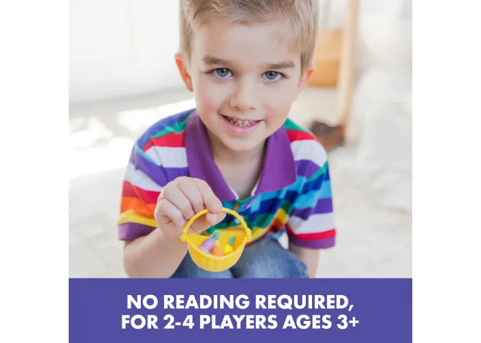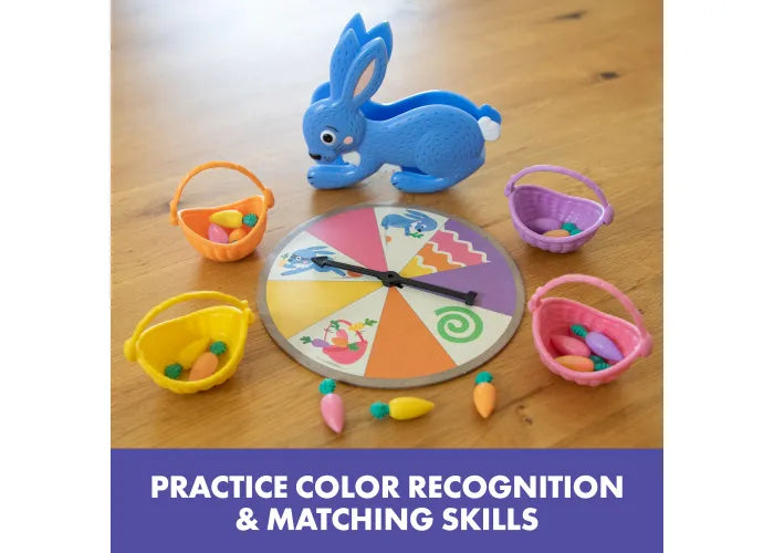 Hoppy Floppy needs your help hunting for colorful carrots! Fill your basket first, and you win in this sweet, springtime, hide-and-seek game. Simple to play and understand for young ones, and easy to set up and clean up!