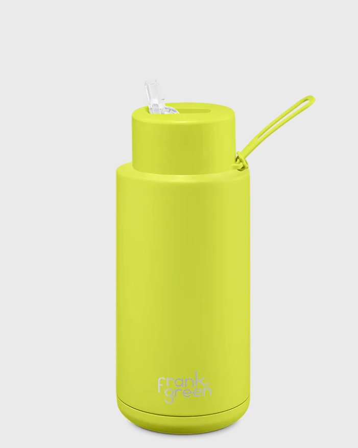 FRANK GREEN 1L CERAMIC DRINK BOTTLE WITH STRAW - NEON YELLOW