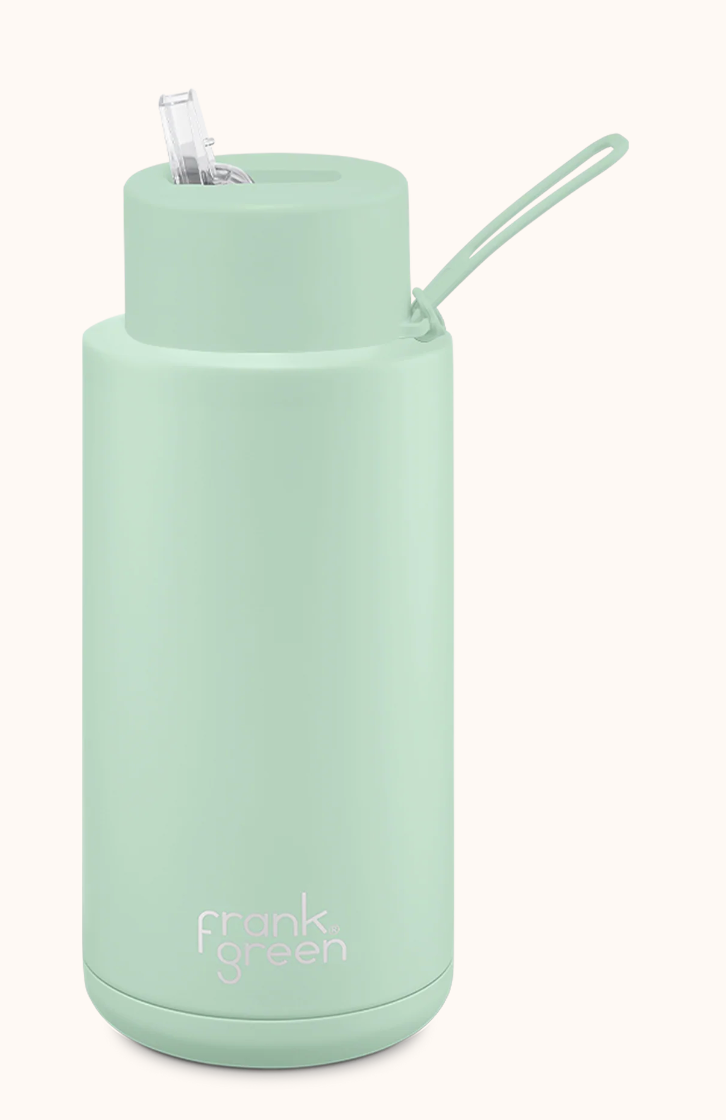 FRANK GREEN 1L CERAMIC DRINK BOTTLE WITH STRAW - MINT GELATO
