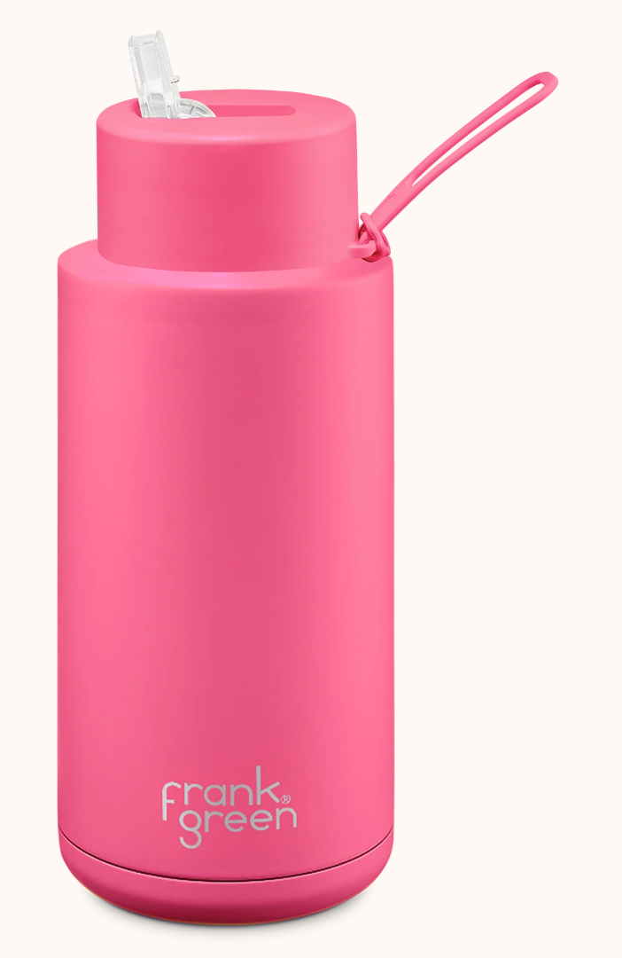 FRANK GREEN 1L CERAMIC DRINK BOTTLE WITH STRAW - NEON PINK