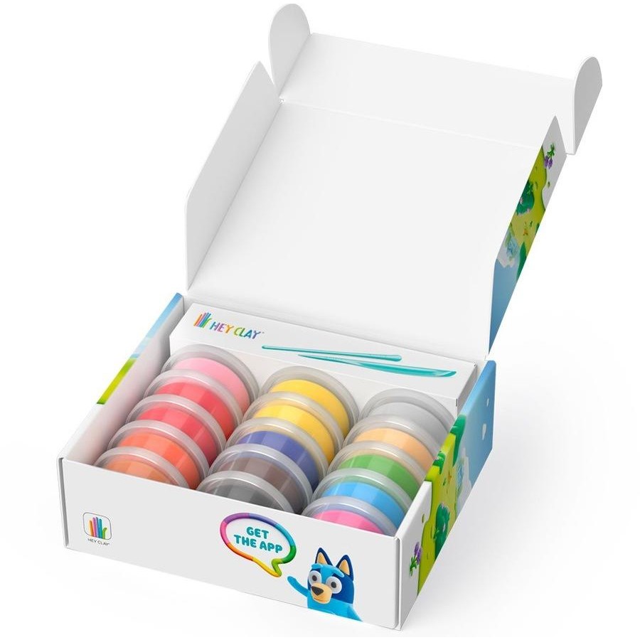 Ready for a clay date with Bluey and her besties? With the Hey Clay Bluey & Friends set, kids can bring six of their favourite characters to life β Bingo, Lucky, Snickers, Coco, Rusty, and of course, the iconic Bluey herself! With soft, air-dry clay and a step-by-step interactive app, young artists will learn real sculpting techniques while having a ton of fun.