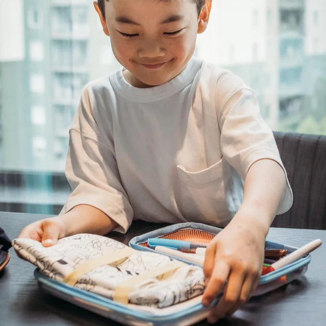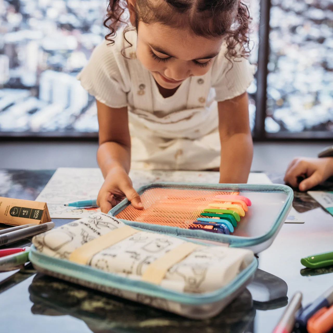 Organise your accessories without the mess. This generously sized kit stores up to 6 Classic HeyDoodle Silicone Colouring Doodle Mats and markers, making everything neat and sorted when you're on the go!