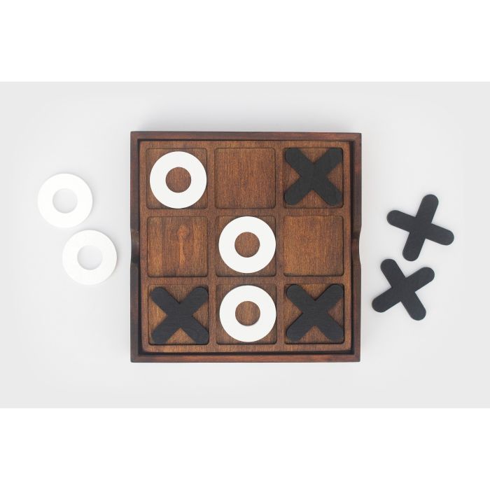 Includes: Deluxe wooden Tic-Tac-Toe board, 10 wooden playing pieces.