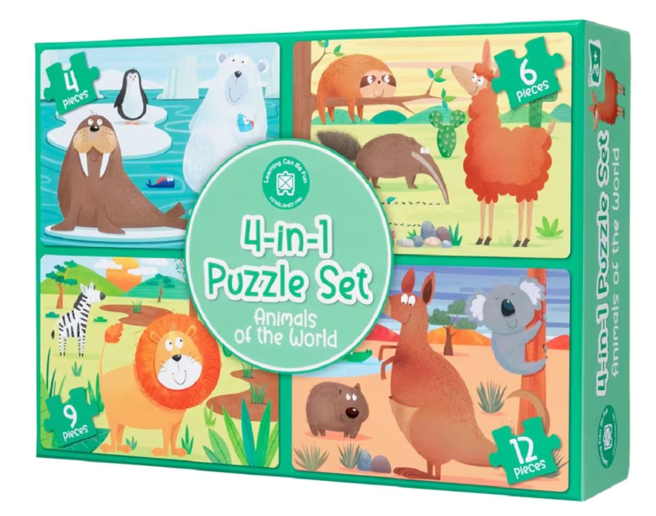 LEARNING CAN BE FUN - 4 IN 1 PUZZLE SET - ANIMALS OF THE WORLD
