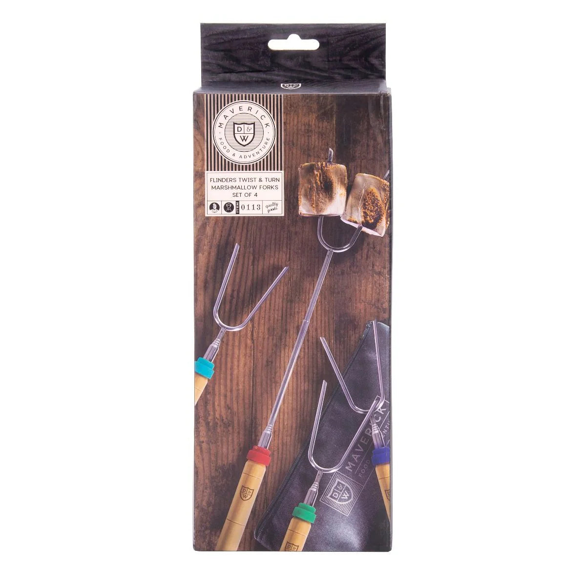 Maverick Filinders Twist & Turn Telescopic Marshmallow Fork Set of 4 by Maverick are perfect for campfire or fire pit toasting, and come with a handy storage bag.