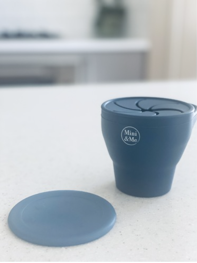 Our silicone feeding range including the Mini & Me Snack Cup Collapsible with Lid Blueberry is designed to grow with your infant and toddler. Keep snacks fresh with the lid on, pop off when you are ready to snack and then collapse it down when you are all finished.