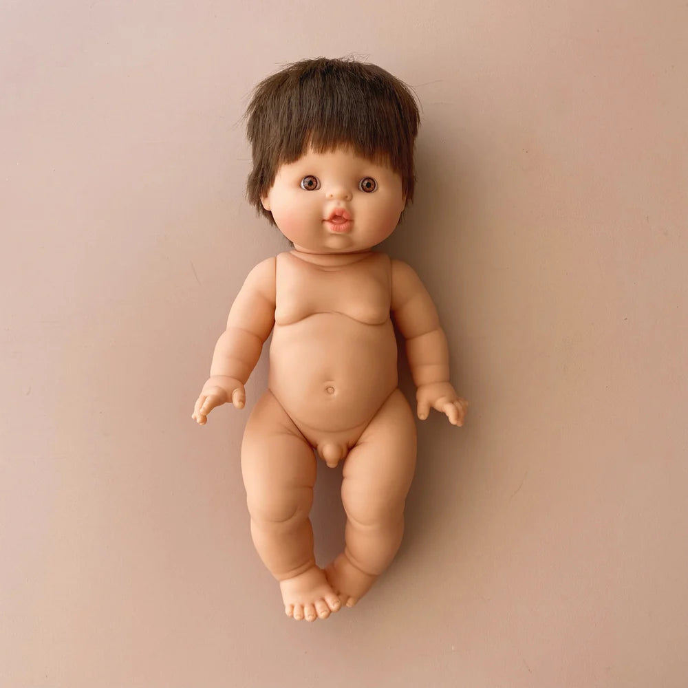 The Minikane Jules is an adorable 34cm baby boy with brown hair anext brown eyes. Minikane Dolls are made from eco-friendly and non-toxic vinyl and have the yummiest subtle vanilla scent. Your little one can dress them up with their own baby clothes or choose from the Minikane outfits.