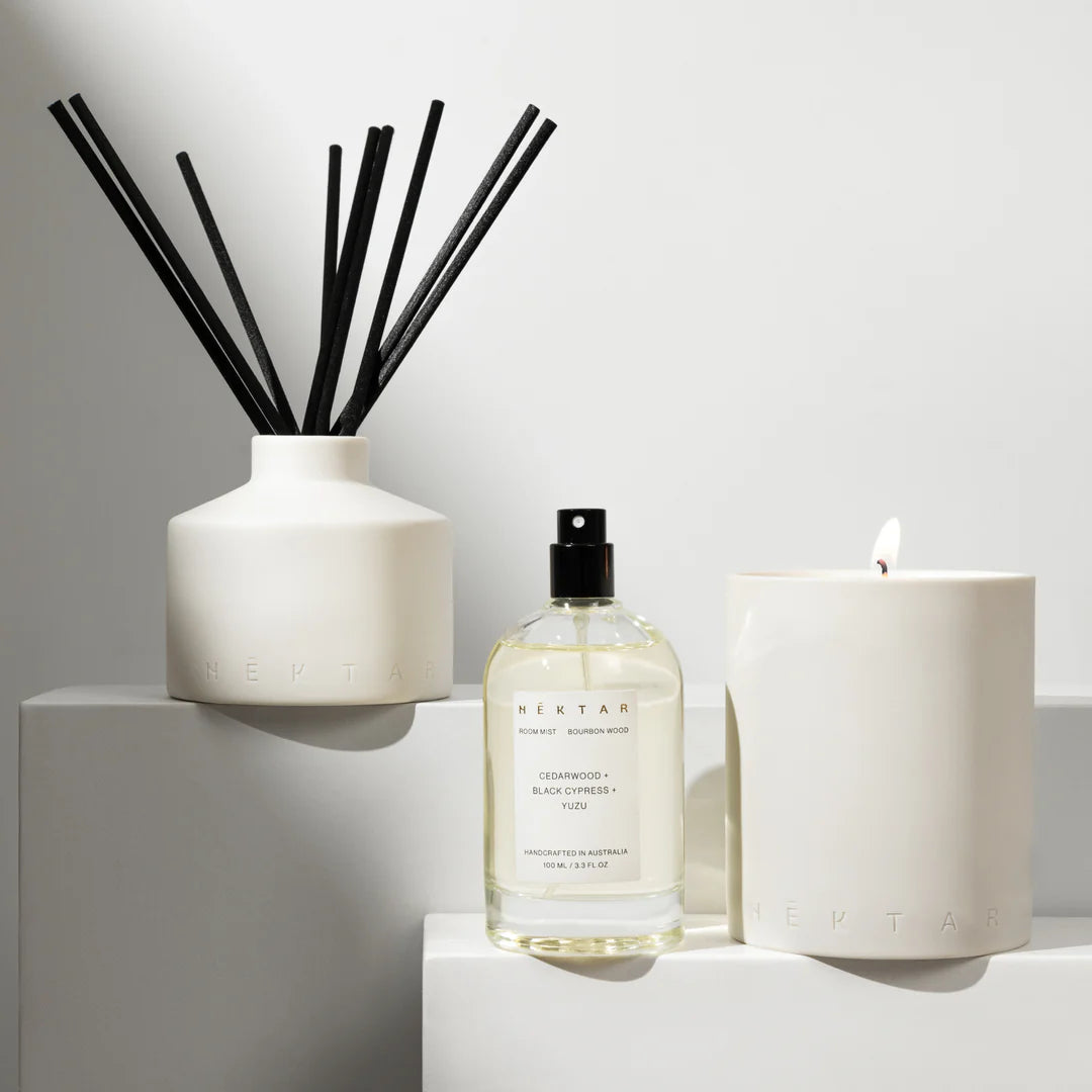 Illuminate your home with the warm, inviting glow of Nēktar Bourbon Wood Natural Soy Candle. Handcrafted in small batches in Australia, this candle features a double wick for an even, steady burn. Enjoy up to 75 hours of aromatic bliss, transforming any space into a cosy retreat.