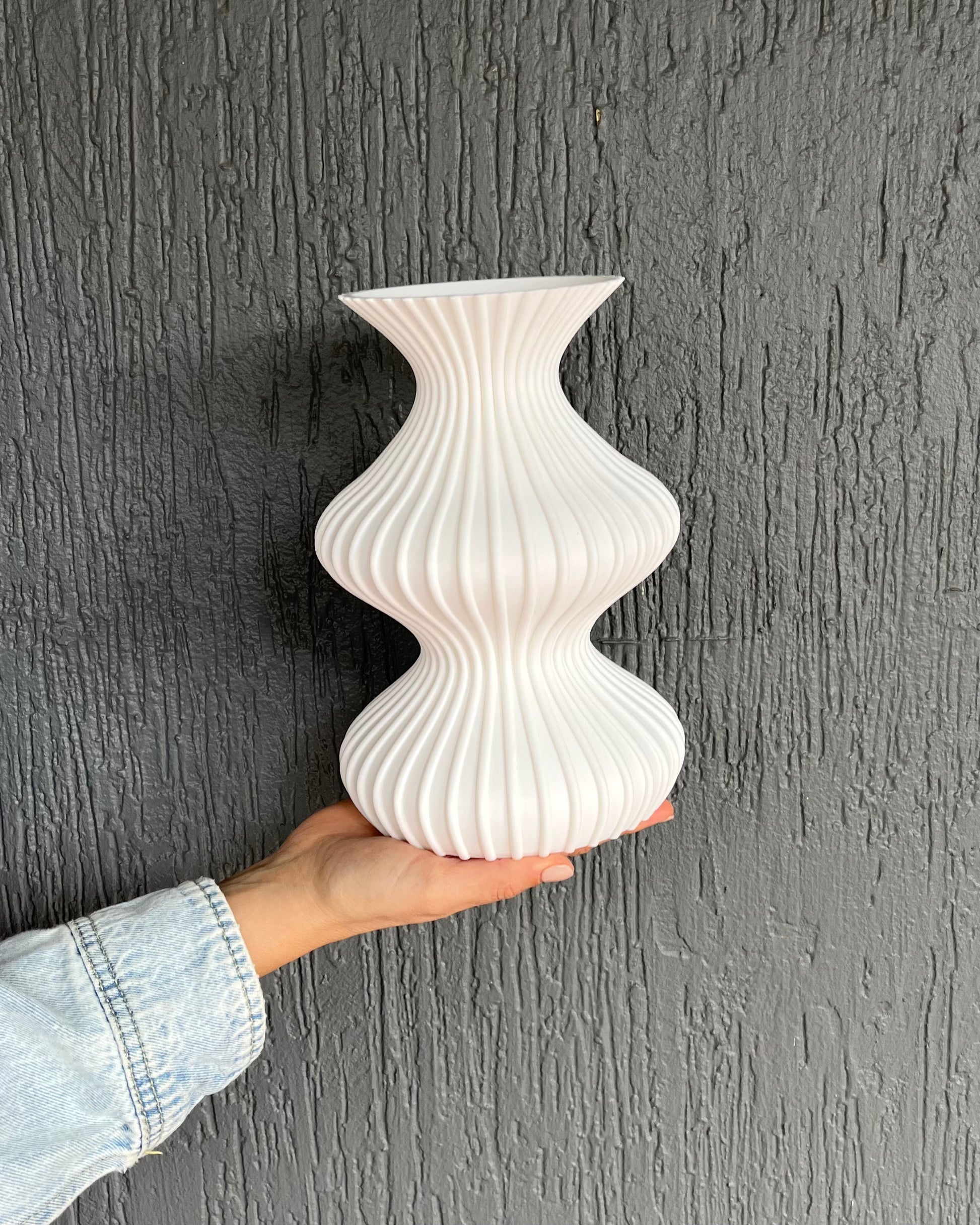 Our statement vase. It's big, curvy, unique and looks different at every angle (hence the name). We love how it makes an impact anywhere it is placed, whether that be at the centre of a table or in a little nook that needs a bit of a makeover. Styling wise this vase is versatile- it is a real mix of modern and classic simplicity.