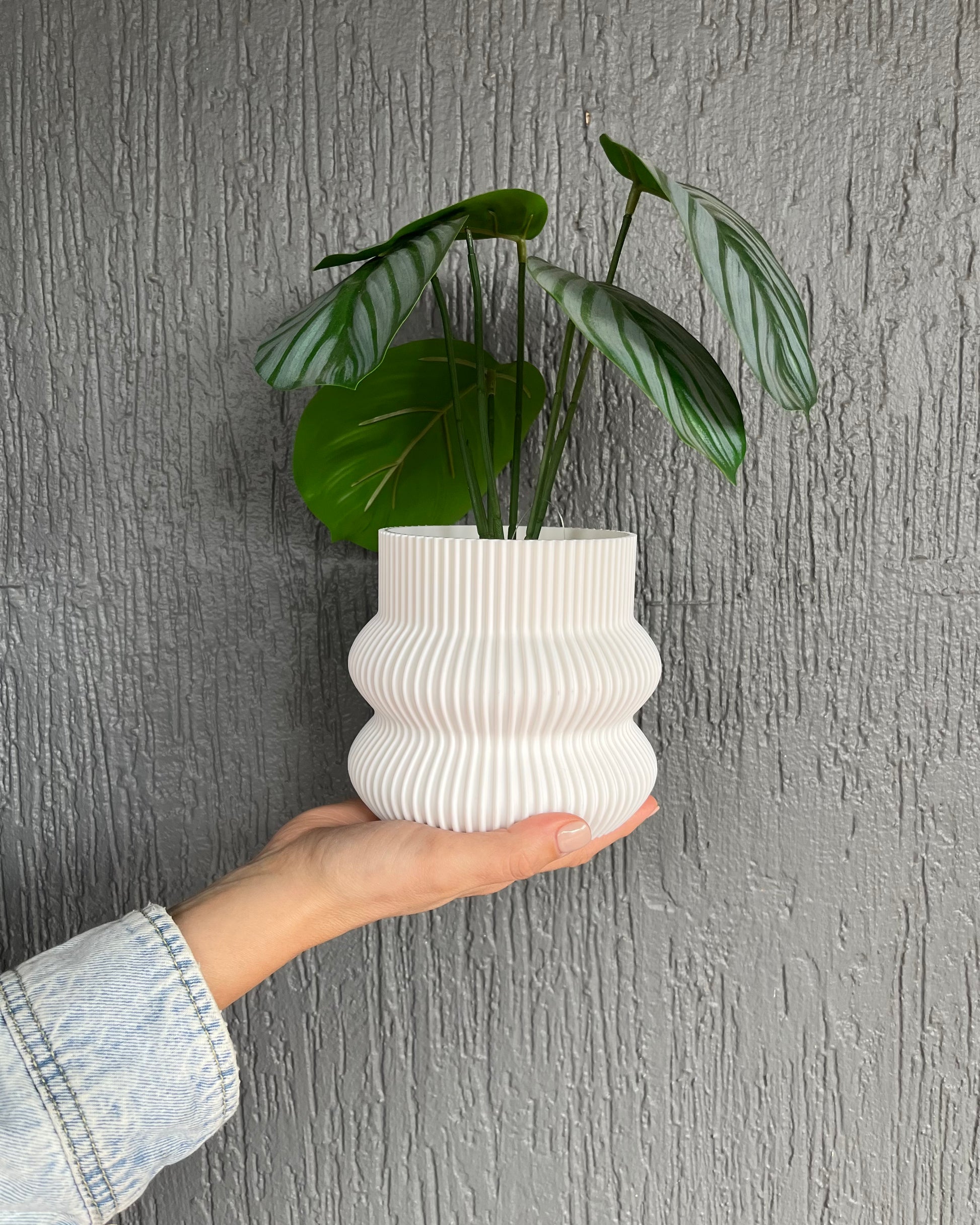 It’s curvy, it’s grand and we designed it by hand! Aaand okay I’ll keep going, it will look great on a stand! The curvy pot is a favourite amongst our Printing Potters family! There isn’t another pot like it and wow does it have impact. It screams modern elegance, not being too in your face but also being unique and interesting. The curvy pot is a great size to put on any table, a ledge, a bench, you name it, the curvy pot will fit-especially in your online shopping cart ;)