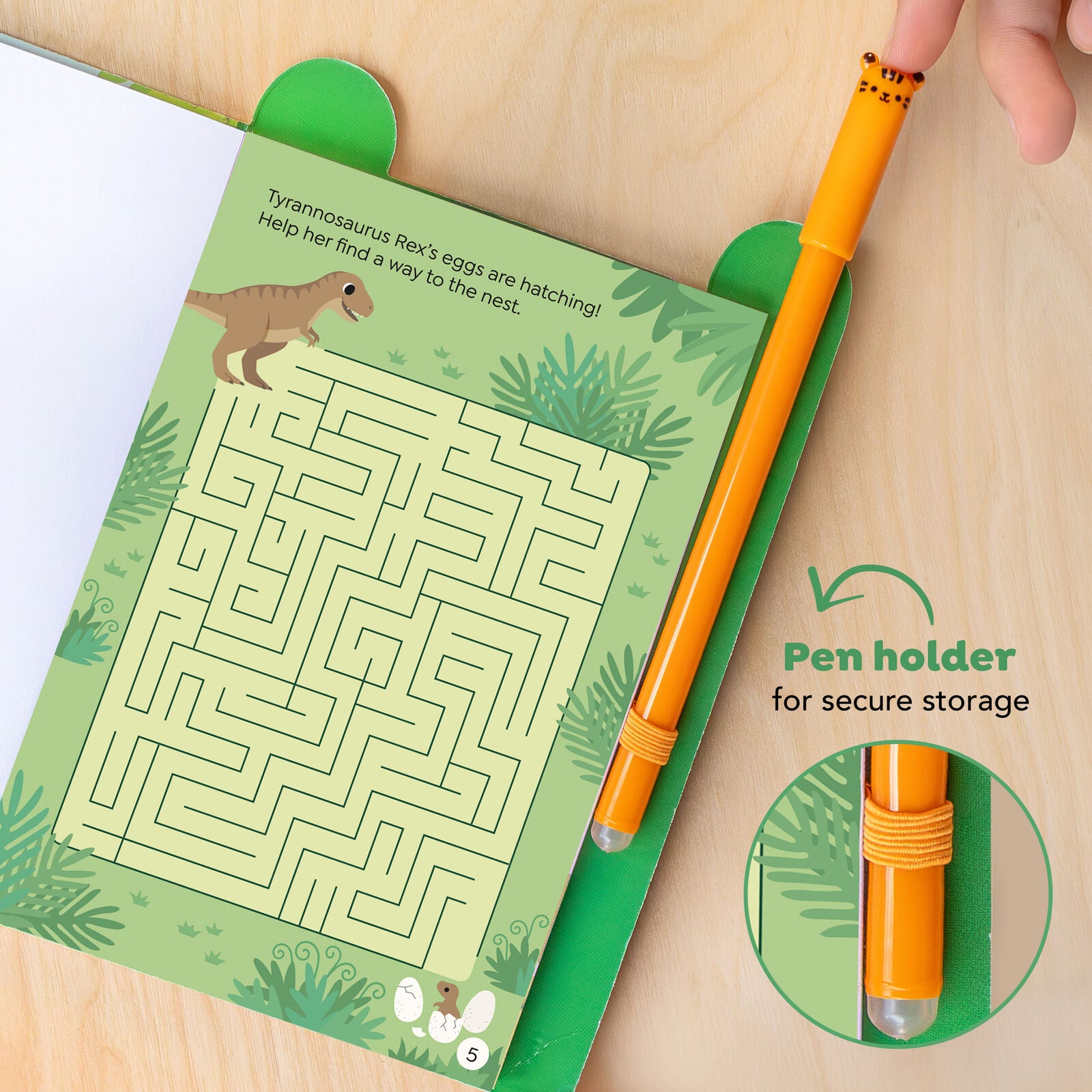 Keep kids busy when it counts — in cafés, waiting rooms, on long drives or rainy days. This compact, lightweight dinosaur-themed activity set is packed with mazes, games, word searches and code-breaking challenges, and comes with a nifty erasable pen for repeated play.