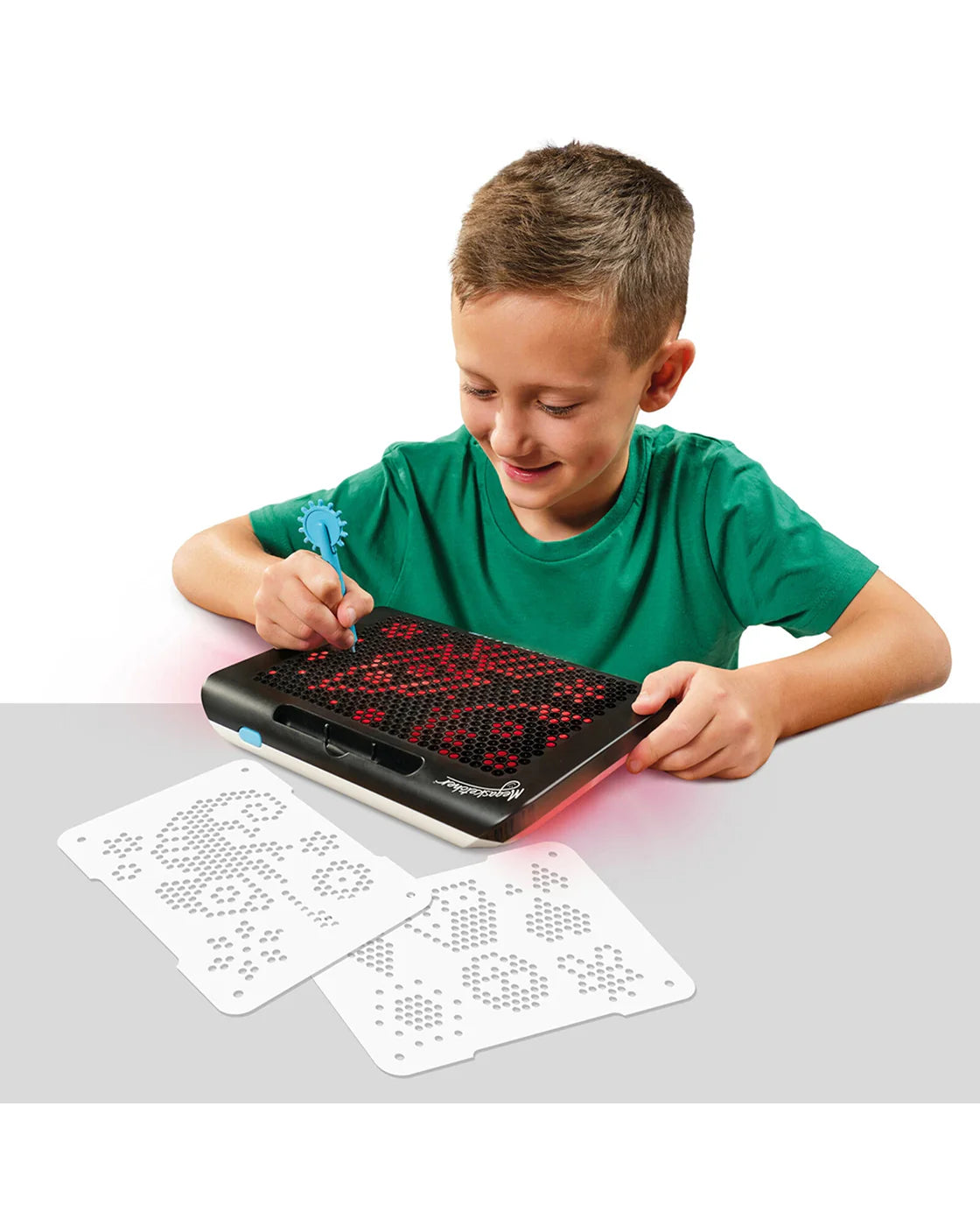 - Light-up drawing board with 632 dots and 8 colours